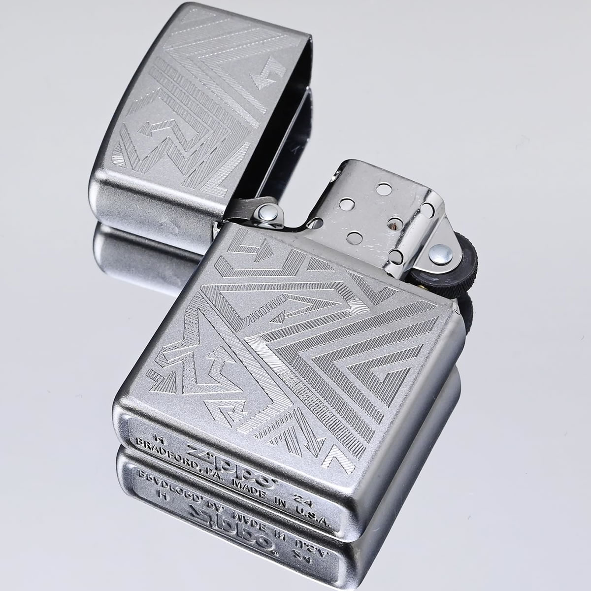 No importa adónde vayas, este clásico encendedor de cromo satinado está listo para acompañarte. Un mar de flechas serpentea por la superficie con un fascinante diseño de autograbado. Viene en una caja de regalo. Para un rendimiento óptimo, llénalo con gasolina para encendedores Zippo.