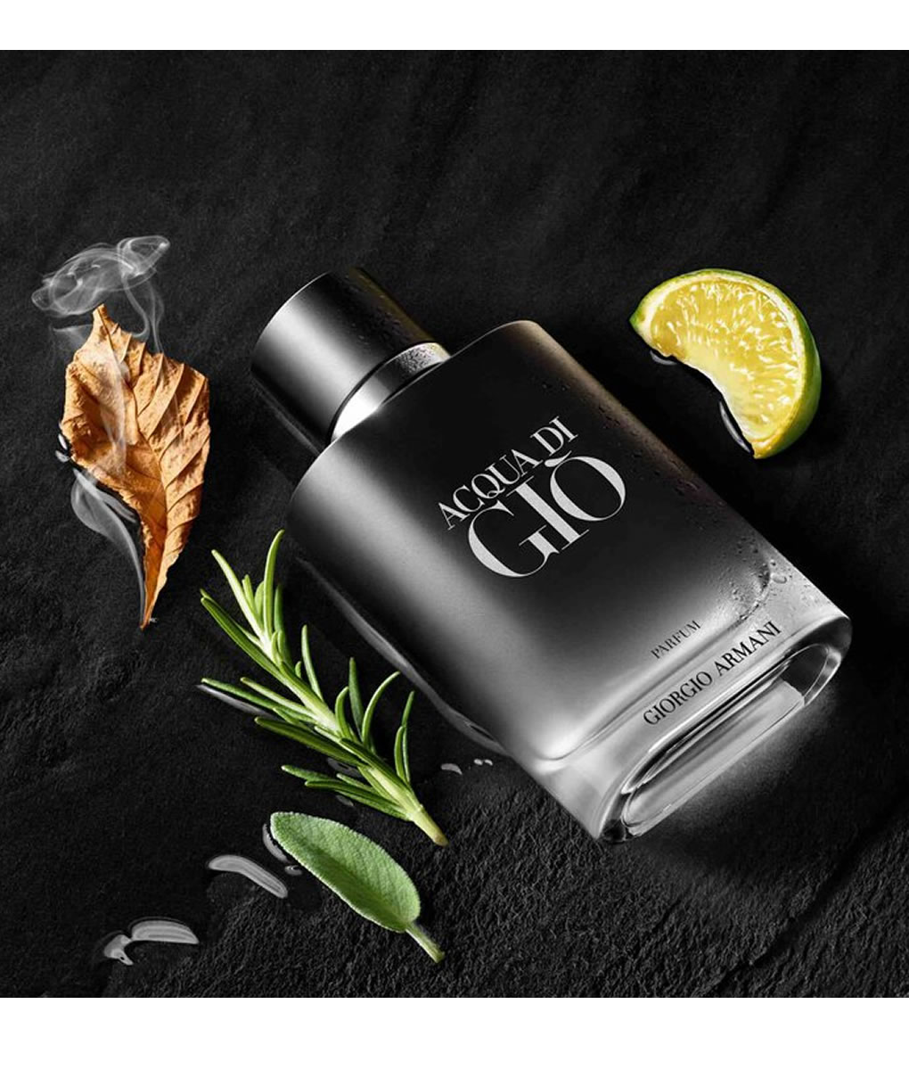 Acqua Di Giò Parfum aporta un frescor intenso a la colección. Sus notas de salida combinan un corazón de bergamota, jengibre y la intensidad de las notas marinas; su corazón fusiona el corazón de geranio bourbon, la esencia de romero y el corazón de salvia sclarea, mientras que un fondo de maderas vibrantes, esencia de pachuli e incienso crea un halo de misterio. Esta fragancia potente se distingue por sus notas de incienso, que aportan una intensidad incandescente a las emblemáticas notas marinas de Acqua di Giò. El diseño del frasco, con su forma elegante y masculina creada en tonos de negro degradado, evoca una nueva excelencia. Como parte del compromiso de Giorgio Armani por un futuro mejor, la fragancia puede recargarse en todos los formatos con el frasco de recarga de 150 ml. El diseño ecosostenible de ACQUA DI DIÒ PARFUM no se limita a su frasco recargable, sino que abarca también unos ingredientes de origen natural y sostenible.