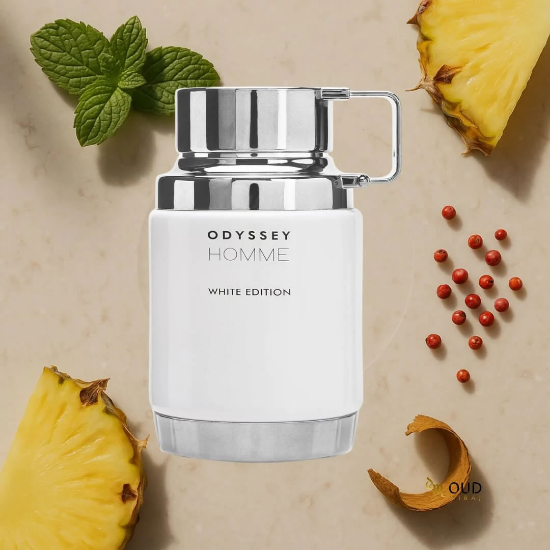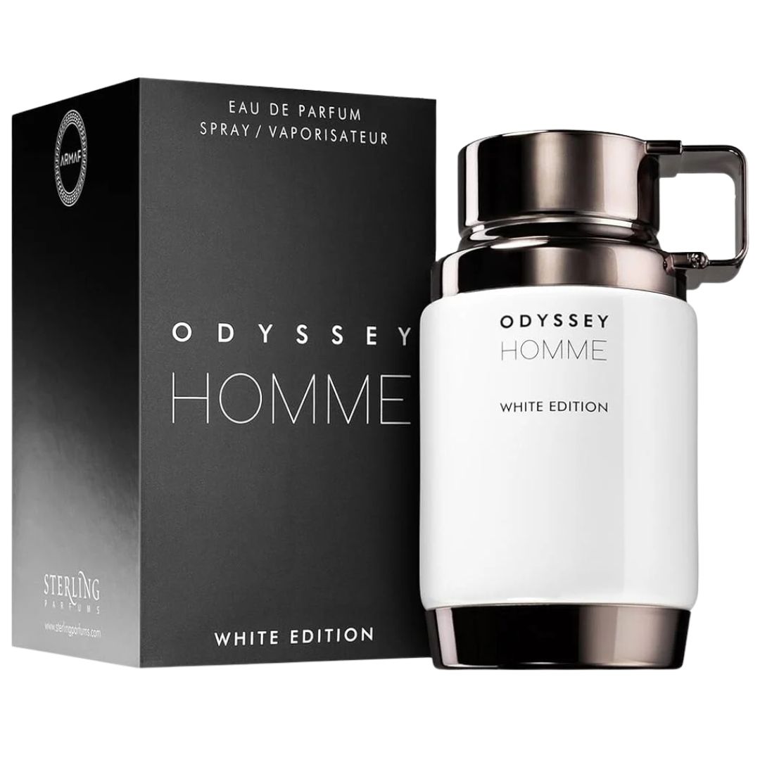 Odyssey Home White Edition encarna el carisma y el espíritu libre. Este elixir se abre con una oleada de especias y hierbas compuestas por menta, pimienta rosa y cardamomo. En el corazón, se despliega una mezcla de salvia herbácea y piña afrutada, junto con un toque de acordes acuáticos que aportan frescura a la fragancia. En la base, notas de cedro, ámbar y vainilla completan el aroma masculino, añadiendo un matiz de dulzura cremosa con intensos tonos amaderados.